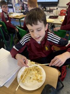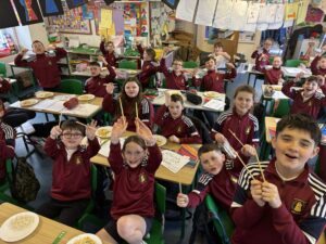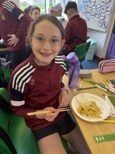 Fourth class have been busy learning about China and the Chinese New Year. They had a blast cooking up chicken curry – it was a real hit! 😋 They even got to test their skills with chopsticks 👍. Kung Hey Fat Choy! 🇨🇳🥢🥘